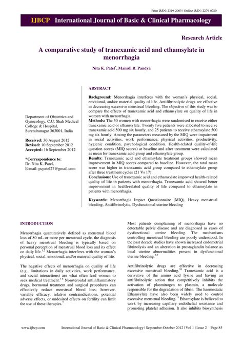 Read Online Comparative Study of Tranexamic Acid & Ethamsylate vs Botropase: The Safety and Efficacy study in Menorrhagia Management Kindle Editon